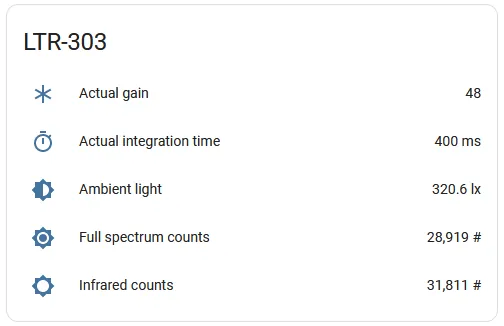 Section titled “Sensors”This component offers five sensors for ALS-equipped devices and one sensor for PS-equipped devices.